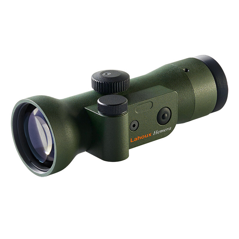 De korte en compacte constructie van het Lahoux Hemera nachtsicht-voorzetapparaat biedt een groot gezichtsveld en maakt het daarmee tot een multifunctionele metgezel voor de jacht op de schietbaan, bij het staljagen en ook op bewegende doelen. Intuïtieve en gebruiksvriendelijke bediening, robuustheid en de beste beeldkwaliteit in combinatie met Photonis-beeldversterkerbuizen maken maximale prestaties mogelijk. Lahoux monteert uitsluitend beeldversterkerbuizen van Photonis™, Gen 2+ en de nieuwste buistechnologie ECHO en ECHO HF. Hiermee wordt zelfs voor de meest veeleisende klanten een maximale prestatie geleverd. Snelle Auto-Gating (ATG), helderheidsregeling (EGAC) en de hoogste prestatiewaarden zijn uniek in deze combinatie.