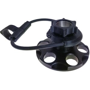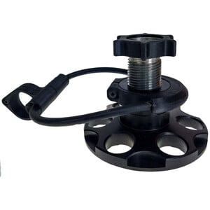 De schroefdraad heeft een verstelbereik van 25 millimeter. De bevestiging aan het statief gebeurt met een ronde rubberen ring.