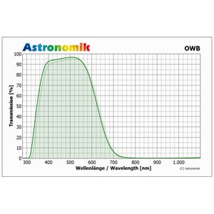Het OWB(Original White Balance) filter verschuift het volledige spectrale bereik van de geconverteerde camera, zodat deze weer zonder beperkingen voor aardfotografie kan worden gebruikt. De beslissing om een camera uitsluitend voor astrofotografie te gebruiken is dus niet langer nodig en is aanzienlijk gemakkelijker voor de portemonnee!