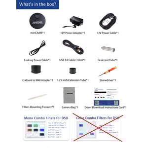 De miniCAM8 is gebaseerd op Sony's 8 MP-sensor IMX585 en beschikt over een volledige thermo-elektrische koeling, die een delta van -45 °C ten opzichte van de omgevingstemperatuur kan bereiken, evenals een geïntegreerd filterwiel met 8 posities voor LRGB- en smalbandopnames.