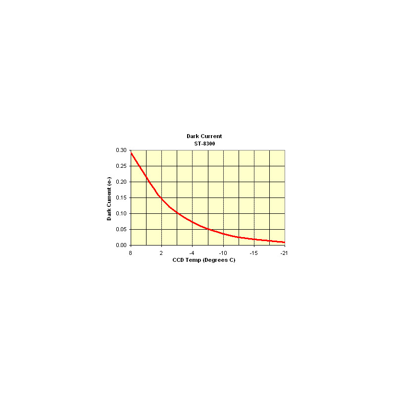 TE cooling: In tests of production samples, the camera reached a maximum of -40°C below ambient in a warm room in less than 3 minutes after the cooling was turned on. It was allowed to stabilize and after a few more minutes the regulation was enabled A few degrees were then given up for regulation with the camera running at only 80% TE cooling power to maintain -36 degrees C below ambient. Because of this CCDs extraordinarily low dark current, great temperature deltas are not required to achieve a dark current low enough that it becomes relatively insignificant compared to the read noise and sky background. For example, in a test, one 15 minute dark frame taken at -10°C was subtracted from another 15 minute dark frame taken at the same temperature. The total noise in the remaining image was ~15 electrons which included both dark current noise and read noise. This is exceptionally low.