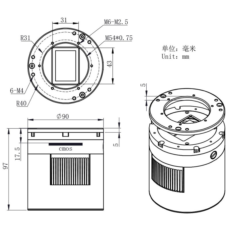 - 16-bits ADC, hiermee krijgt u een diepte als bij CCD-camera's, maar met een onvergelijkbaar hogere gevoeligheid