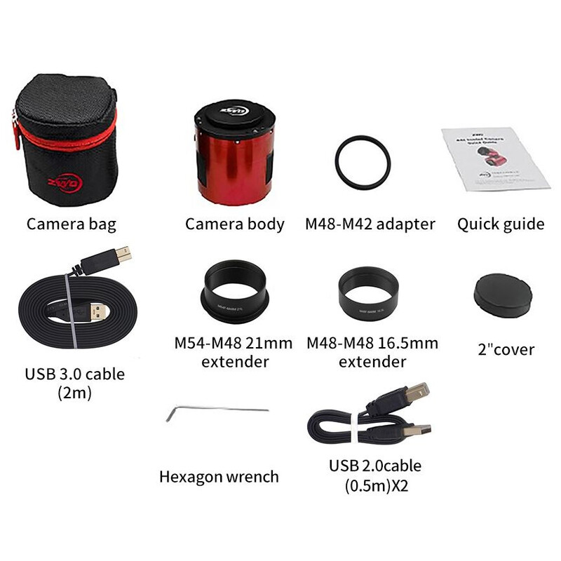 ZWO heeft met deze nieuwe camera weer een grote stap vooruit gezet. De full-frame-sensor met een diagonaal van ca. 43 mm maakt astrofoto's met gigantische beeldvelden mogelijk.