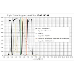 De Night Glow Suppression & LPS-filters van IDAS versterken het contrast van astronomische emissienevels ten opzichte van de verlichte hemel. Het betreft echter geen lijnfilter, waardoor de kleurbalans van breedbandige objecten (sterrenstelsels of sterrenhopen) behouden blijft.