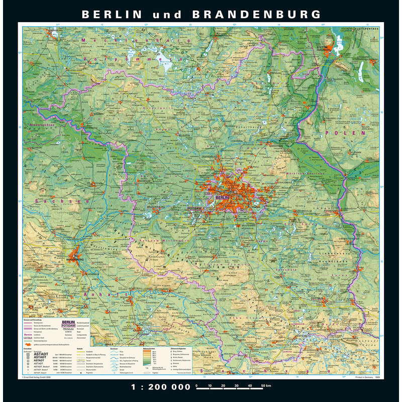 > PONS Regionale kaart Berlijn-Brandenburg fysiek en politiek (148 x 150 cm)