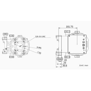 - Het montagesadel maakt het gebruik van prismarails volgens de Vixen- of Losmandy-standaard mogelijk. Zo kan vrijwel elke telescoop worden gemonteerd.