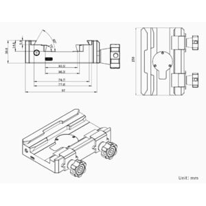 • Het montagesadel maakt het gebruik van prismarails volgens de Vixen- of Losmandy-standaard mogelijk. Zo kan vrijwel elke telescoop worden gemonteerd.