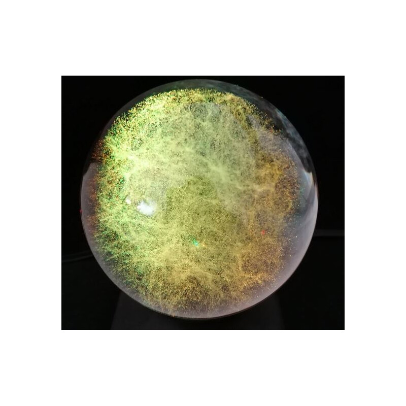 Een product van zeer hoge kwaliteit: deze bol bestaat uit massief borosilicaatglas, waarin zeer nauwkeurig punten zijn gegraveerd met een laser, die samen een ruimtelijk patroon creëren. Op de lasergravure wordt het invallende licht prachtig weerkaatst in de betreffende kleur.