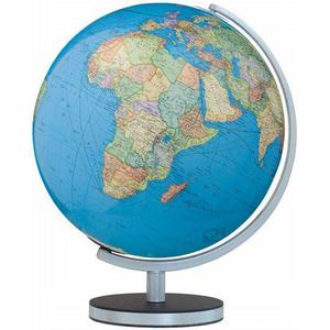 De met de hand op mondgeblazen kristallen bollen gelamineerde kaart combineert naast de perfecte harmonie van de kleuren een hoge mate van actualiteit en cartografische precisie.