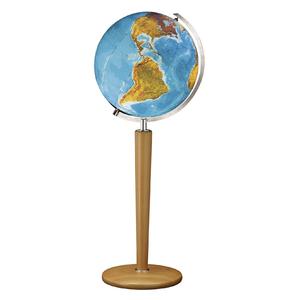 De met de hand op mondgeblazen kristallen bollen gelamineerde kaart combineert naast de perfecte harmonie van de kleuren een hoge mate van actualiteit en cartografische precisie.