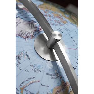 Deze uiterst representatieve staande globe combineert op vakkundige wijze traditie en moderniteit. Een traditioneel met de hand gelamineerde bol met een indrukwekkende diameter van 75 cm wordt gecombineerd met een modern ontworpen standaard van geborsteld roestvrij staal.
