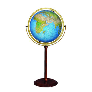 Dankzij de cardanische ophanging kan de globe bijna zwevend in alle richtingen worden gedraaid. Het is verbazingwekkend hoe gemakkelijk de bol in alle richtingen kan worden bewogen. De voet is gemaakt van massief hout in een warme mokkatint. U waant zich meteen terug in de tijd van de ontdekkingsreizigers, maar dan met een zeer actuele kaart. De meridiaan is gemaakt van stevig metaal dat onder druk is gegoten.