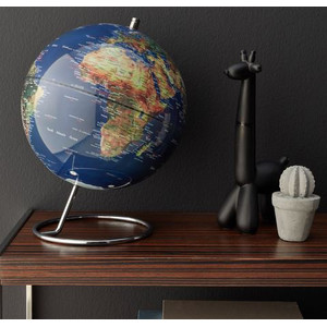 De 240 x 310 mm grote, Engelstalige globe GALAXY toont onze planeet met een topografische kaart – dus zoals deze vanuit de ruimte te zien is. De centrale as simuleert de rotatieas van de aarde en maakt een bekijken vanuit alle hoeken mogelijk. Voor maximale stabiliteit staat de globe op een hoogwaardig verchroomd frame.