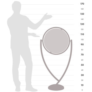 Globe-wereldkaart met een diameter van 50 cm. Het elegante en moderne design is verkrijgbaar in lichtblauw met een antracietkleurige of bruine as en een walnootkleurige voet. Totale afmetingen: 64x50x50x126(h) cm.