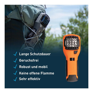 Het instrument is geschikt voor vissen, jacht, kamperen, caravanning en voor gebruik in de eigen tuin. Met de meegeleverde clip kan het eenvoudig aan een riem of uitrusting worden bevestigd. Een eerste set verbruiksgoederen (butaanpatroon en 3 actieve stofplaatjes) voor 12 uur gebruik wordt meegeleverd.