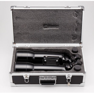 De levering omvat verschuifbare aluminium doppen met afdekkap aan de voorkant, een afneembare handgreep, stevig bevestigd met 2 handschroeven, een fotostatiefadapter met 1/4"-20 schroefdraadaansluiting, evenals een transportkoffer met slot en vormvaste inzetstukken en een oculairenset 23-voudig (MC-verguld) en een oculairenset 41-voudig (MC-verguld). De oculairs worden scherpgesteld door een 1,25"-helikale focusser. Standaard oculairs 1,25" worden meegeleverd. Bijzonder aan te bevelen zijn de TeleVue-oculairs uit de Delos-serie.