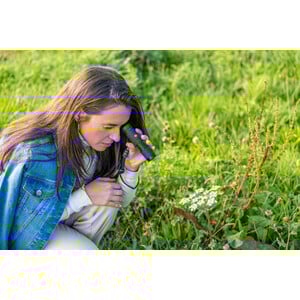 De meegeleverde macrolens van de Leica Monovid 8x25 biedt extra toepassingsmogelijkheden: al vanaf een afstand van 25 tot 30 cm kunnen objecten haarscherp worden waargenomen tijdens de observatie, net als met vergrootglazen. Zo kunnen fijne structuren van bloemen, kunstwerken of postzegels met behulp van de macrolens moeiteloos ook op korte afstand worden waargenomen. Ook onderweg in de stad, in het theater of in de tuin maakt deze lens spontane observaties van dichtbij mogelijk. In combinatie met de 8-voudige vergroting levert hij daarbij altijd een stabiel, briljant beeld.