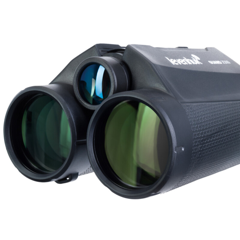 De Levenhuk Guard verrekijker combineert de functionaliteit van een klassieke verrekijker met een afstandsmeters. U kunt het instrument gebruiken als een normale verrekijker, maar het kan ook afstanden en hoeken in het veld meten.