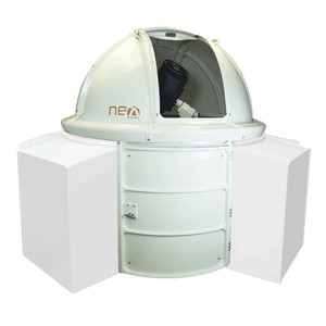 - In vergelijking met conventionele koepels beschikt NexDome dankzij zijn hogere wanden over een betere doorgang en biedt meer ruimte voor langere telescooptubi