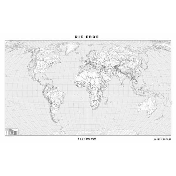 > Klett-Perthes Verlag Weltkarte Erde - physisch / stumm (P) 2-seitig