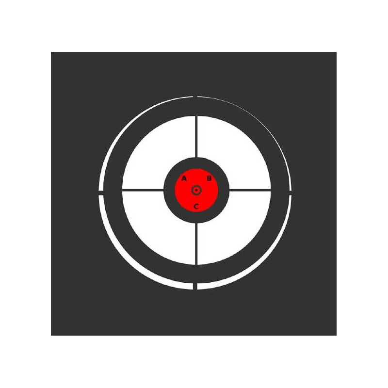 - Stap 1 - Afstelling van de vangspiegel: Verstel de vangspiegel met de stelschroeven totdat u de centrale markering van uw vangspiegel precies in het midden hebt (afbeelding C). U ziet onmiddellijk minimale afwijkingen, die u eenvoudig kunt afstellen. Let erop dat de contraschroeven vooraf zijn losgedraaid (indien aanwezig) en dat de vangspiegel na de collimatie niet los zit.