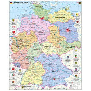 > Stiefel Kaart Deutschland politisch mit Wappen (97 x 119 cm)
