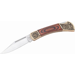 Het donkere pakkahout harmonieert prachtig met de versierde beslagdelen. Het beproefde hechtmes van dit Herbertz zakmes is gemaakt van roestvrij AISI 420-staal. Een klassieke rugvergrendeling zorgt voor veiligheid tijdens het gebruik.