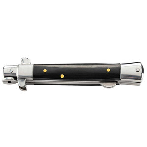 Dit zakmes van Herbertz is geïnspireerd op een springmes. Het stiletto-lemmet van roestvrij AISI 420-staal wordt echter zonder veerondersteuning via een nagelkap zijdelings uit het handvat geklapt en daar door een rugvergrendeling vastgezet. Roestvrijstalen wangen en zwart micarta vormen het aantrekkelijke handvat.