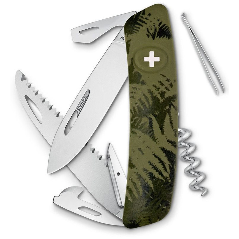 Het 75 mm lange lemmet is vervaardigd uit roestvrij staal 440 / 57 HRC en bestaat uit een chroom-molybdeenlegering. Het heeft een professionele en duurzame snijcapaciteit. Naast de robuustheid staat vooral de veiligheid voorop: om het lemmet te ontgrendelen en te sluiten, moet het SWIZA-kruis worden ingedrukt. De doorlopende uitsparing maakt het openen voor rechts- en linkshandigen mogelijk. - Steek- en boor