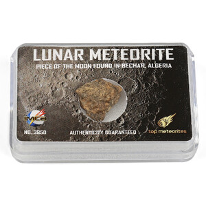In totaal is er slechts 50 gram van deze meteoriet beschikbaar bij onze gecertificeerde leverancier. Het aanbod is daarom zeer beperkt. Verzeker u van een klein stukje van deze maanmeteoriet.