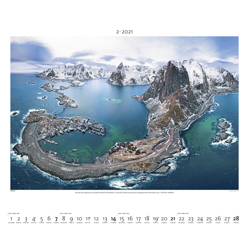 Het royale formaat van deze wandkalender laat de 12 indrukwekkende luchtfoto's volledig tot hun recht komen. Het kalendergedeelte eronder is bewust ingetogen gehouden om de motieven veel ruimte te geven.