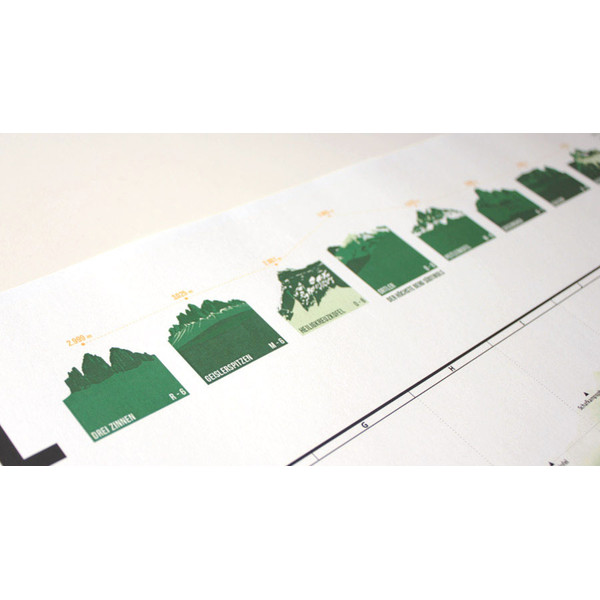Boven de kaart is bovendien een selectie van de mooiste bergen van Zuid-Tirol afgebeeld!