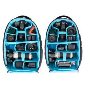 Deze zeer ruime rugzak biedt voldoende plaats voor fotografen, videografen en mediaprofessionals. De volgende uitrusting past bijvoorbeeld in deze rugzak: