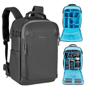Deze fotorugzak biedt ruimte voor 1 DSLR- of systeem camera met batterijgreep en bevestigde 70-200 mm objectief, reservecasing, 3 middelgrote objectieven, flitser, een laptop tot 16 inch, tablet tot 11 inch en accessoires. Als alternatief is er ook ruimte voor een DSLR-camera met batterijgreep en objectief en een compacte en opvouwbare drone inclusief controller en accu, 2-3 objectieven en flitser, voldoende opbergruimte.