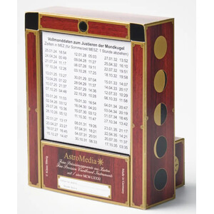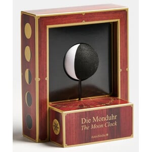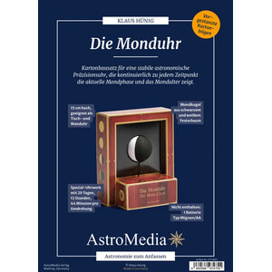 De maanklok van AstroMedia heeft weliswaar historische voorbeelden in de grote astronomische klokken uit de middeleeuwen, maar als wand- en tafelklok is zij waarschijnlijk wereldwijd de eerste en enige die de verandering van de maanfase op deze manier weergeeft. Het in elkaar zetten van deze kartonnen bouwset met speciaal uurwerk is eenvoudig en leidt snel tot een zeer elegant resultaat.