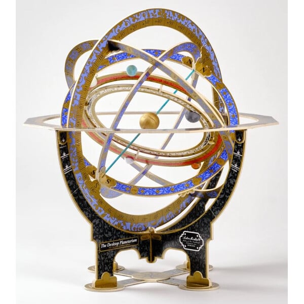 De set bestaat uit vierlaags constructie karton en is bijna even dik als multiplex. De elegante gouddruk in antiek design met beschermende lak zorgt ervoor dat het planetarium een echte blikvanger is en blijft.