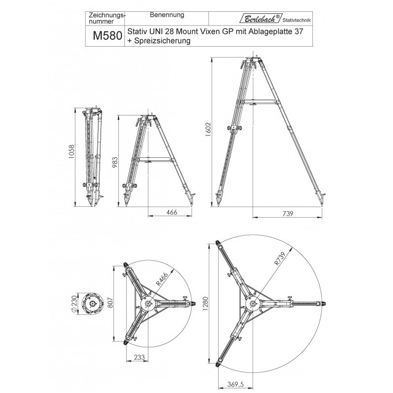 > Berlebach Statief Uni 28 met 3/8" vlakke steunplaat