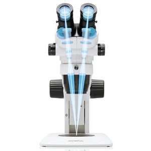De SZ61 beschikt over een trinoculair zicht met geïntegreerde C-mount adapter 0,5x. De afbeeldingsschaal is instelbaar tussen 0,67 - 4,5x, zodat de vergroting traploos kan worden geregeld tussen 6,7x en 45x. Met een zoomverhouding van 6,7:1 behoort hij daarmee tot de beste in zijn klasse.