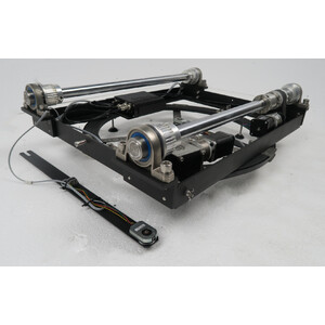 - Spiegelondersteuning op maat: de Dobson beschikt over een zorgvuldig ontworpen en geoptimaliseerd flotatiesysteem dat een meer dan geschikte ondersteuning biedt voor de sandwich-spiegel. Het driepuntscollimatiesysteem opereert volledig onafhankelijk van de laterale slingondersteuning. Hierdoor zal het vaak voorkomende "chips"-astigmatisme, veroorzaakt door de sling bij gebruik van het eenvoudige collimatiesysteem met drie ankerbouten, volledig worden geëlimineerd. Bij een eenvoudig collimatiesysteem met ankerbouten kan de collimatie van de hoofdspiegel ertoe leiden dat de sling axiaal aan de spiegelrand trekt, waardoor de spiegel de vorm van chips aanneemt en er zo een vervelend astigmatisme ontstaat.