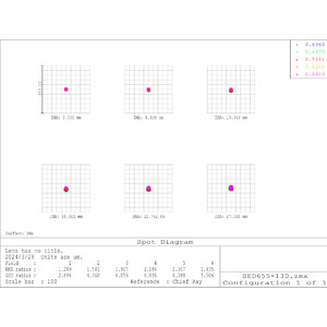 Grote sensoren zijn zeer kritisch. De 130/650 Quintuplet is precies daarvoor ontworpen. De optische correctie reikt tot een sensordiagonaal van 55 mm. Dit betekent: puntvormige sterren, ook in de hoeken. Geen vage randen. Geen kwaliteitsverlies aan de rand van het beeld. De quintupletconstructie met drie ED-elementen maakt het verschil. Klassieke tripletten bereiken hier hun grenzen. Deze vijfvoudige optiek corrigeert sferische aberraties, kleurfouten en veldkromming aanzienlijk beter. U krijgt een groot, bruikbaar beeldveld met een hoog contrast.