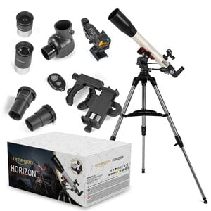 • Alles aanwezig om te beginnen: een complete set met LED-zoeker, twee Plössl-oculairs, amici prisma, barlow lens, extender, smartphone adapter en Bluetooth-shutter release. Begin dus direct aan het avontuur!