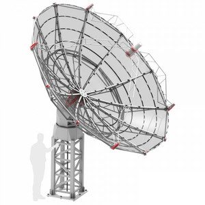 Parabolische antenne met primair brandpunt: De WEB500-5 antenne biedt een groot opvangoppervlak bij een laag gewicht. Het metalen rooster wordt in vorm gehouden door een stijve frameconstructie met een maximale fout van minder dan Lambda/20.