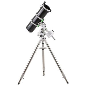N 150/750 telescoop: deze veelzijdige Newton telescoop biedt zowel beginners als meer ervaren amateurastronomen veel licht en hoge stabiliteit voor een zeer bescheiden prijs. Het verzamelt zoveel licht met zijn royale diameter van 150 mm dat verre DSO's, zoals de Ringnevel in Lyra of de Halternevel, prachtig zichtbaar worden en bolvormige clusters, zoals M13, oplossen in een veelvoud aan individuele sterren aan hun randen. Planetaire waarneming biedt rijke details in afbeeldingen van Saturnus, Jupiter, Venus en Mars. De f5-beeldverhouding betekent dat deze reflector in de klasse van 'snelle' Newton-telescopen valt. Deze telescoop is daarom bijzonder geschikt voor astrofotografie. Het lichtopvangvermogen van de 150 is 460 keer groter dan dat van het blote oog alleen (met een 7 mm volledig uitgezette pupil).