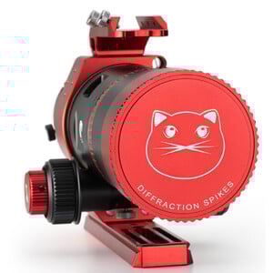 Onder de stofkap bevindt zich een speciaal voor deze optiek berekende Bahtinov-masker. Deze focushulp is zeer handig om de juiste focuspositie van de sensor te vinden.