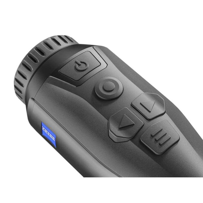 De innovatieve vorm van de optiek zorgt dat de camera gemakkelijk met één hand bediend kan worden. Dat geldt voor zowel linkshandigen als rechtshandigen. Bovendien maakt het ontwerp moeiteloze langdurige observatie mogelijk. De vorm van andere warmtebeeldcamera's dwingt de jager vaak zijn grip te veranderen om de knoppen te kunnen indrukken met de vingertoppen. - Zoom met hoge precisie