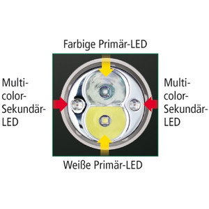 - 2 secundaire LED's in rood, groen, blauw