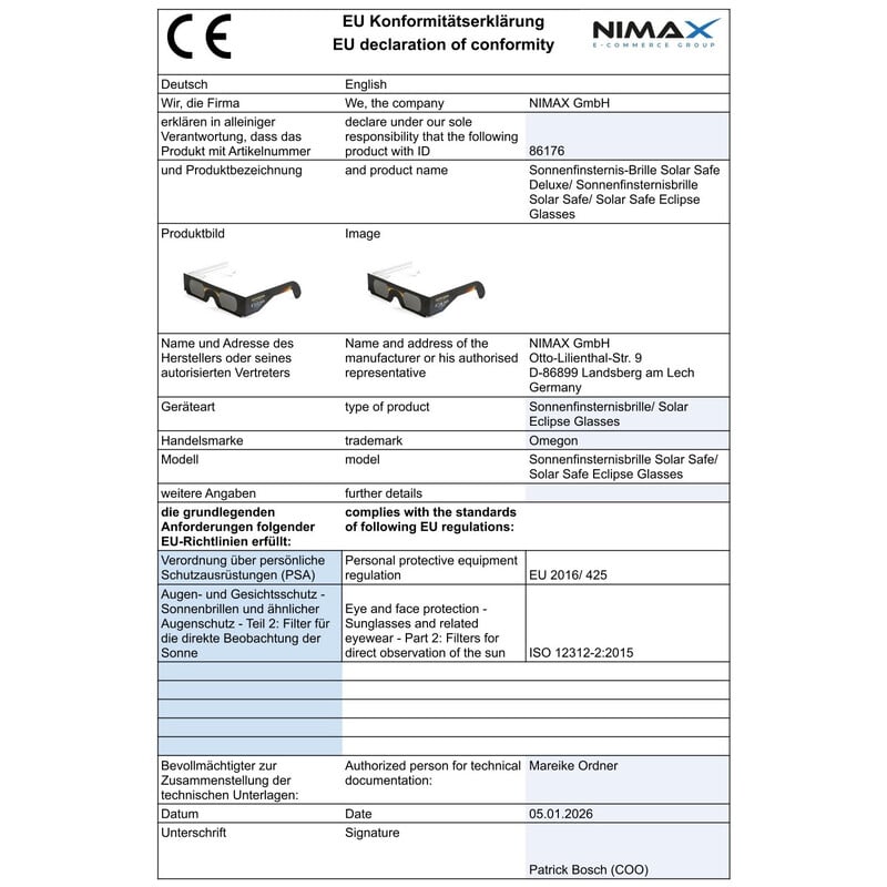 Zonnewaarneming > Zonnefilters > Zonnebrillen voor zonsverduisteringen > Omegon > Omegon Zonsverduisteringsbril Sonnenfinsternis-Brille Solar Safe